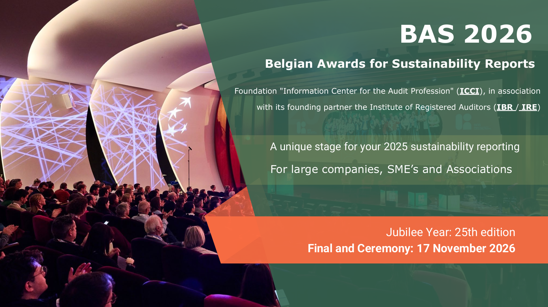 As from 2026, the Belgian Foundation "Information Center for the Audit Profession" (ICCI) will organise the BAS in association with its founding partner, the Institute of Registered Auditors (IBR-IRE)."
