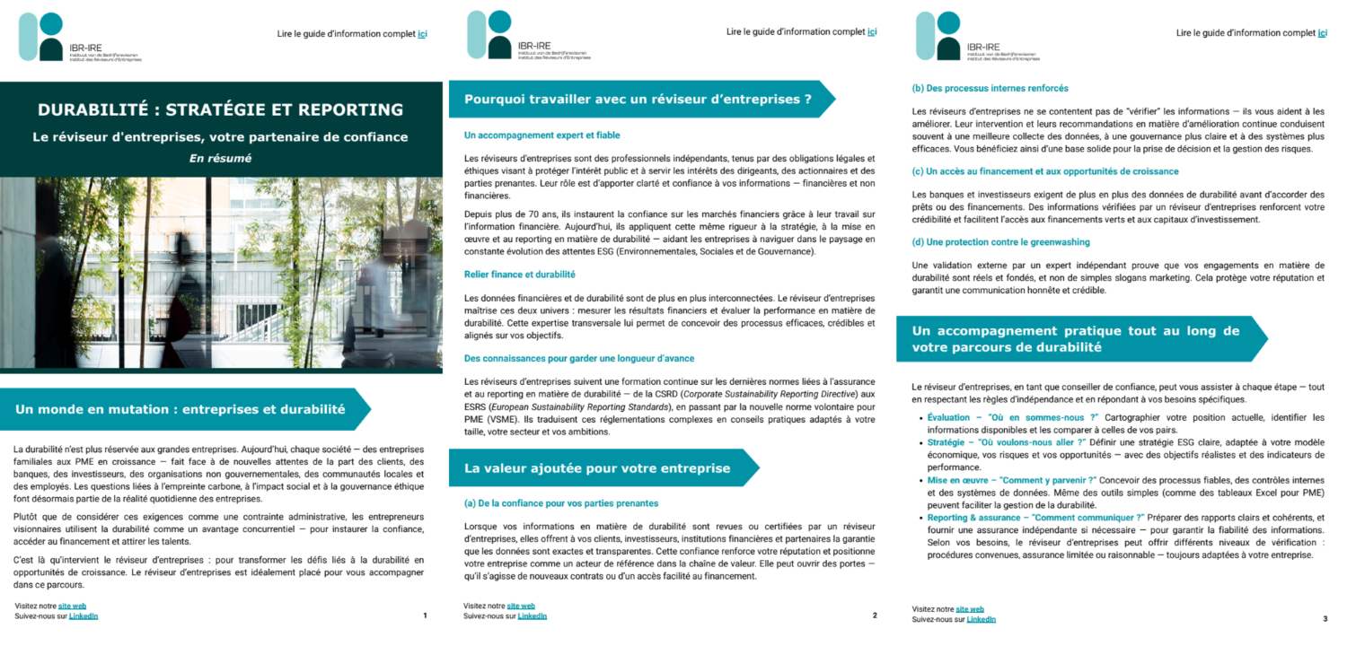 Un résumé de ce nouveau guide d’information ESG a également été élaboré. Il est disponible ici en français, ainsi qu'en néerlandais et en anglais.
